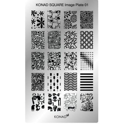 Las placas KONAD Rectangulares llevan los diseños más originales. En el caso de la placa Rectangular Konad C01, son diseños para uña completa. Esta placa contiene 20 diseños.